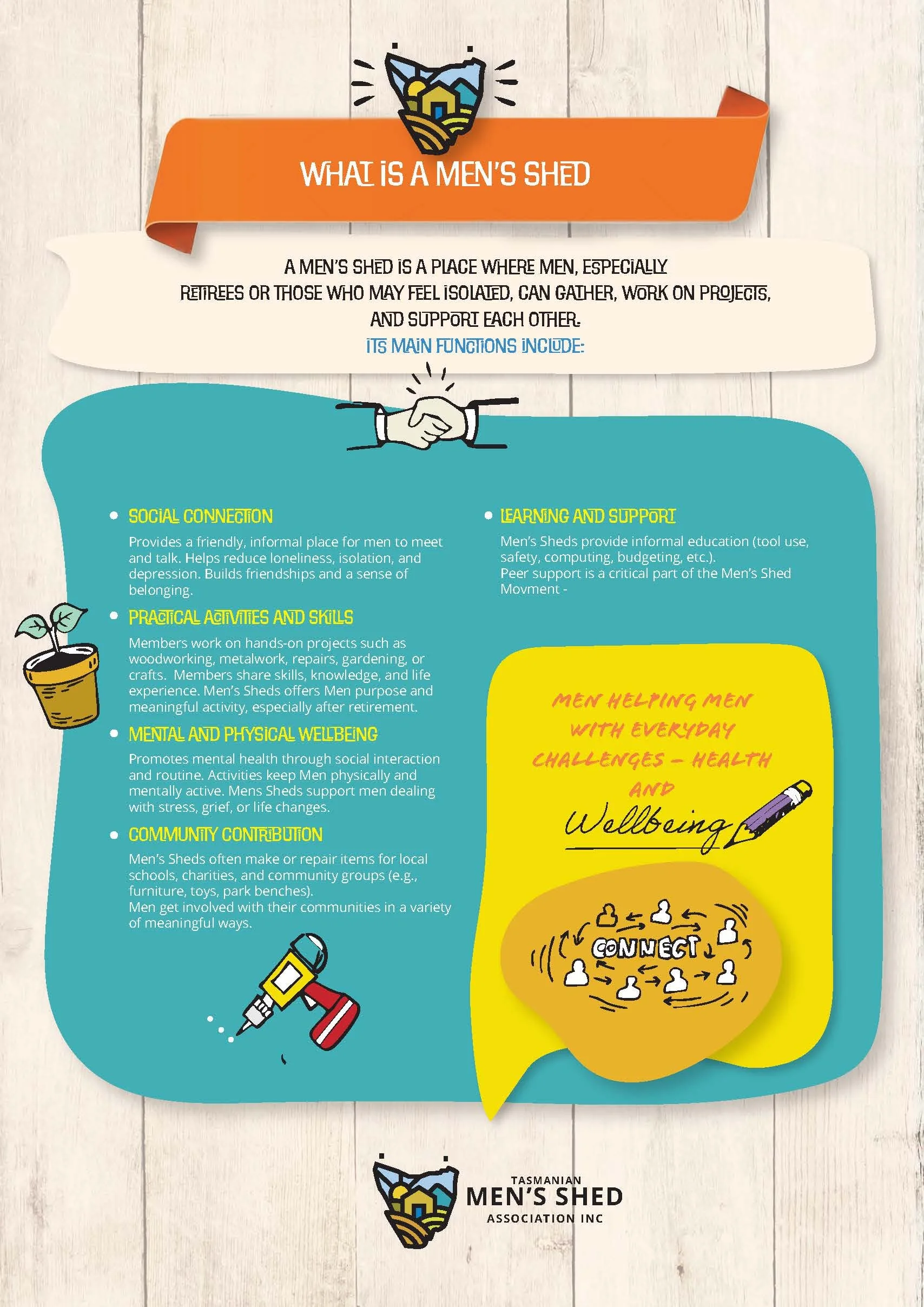 Develop activities and programs for the promotion of Men’s Sheds to the Tasmanian community.